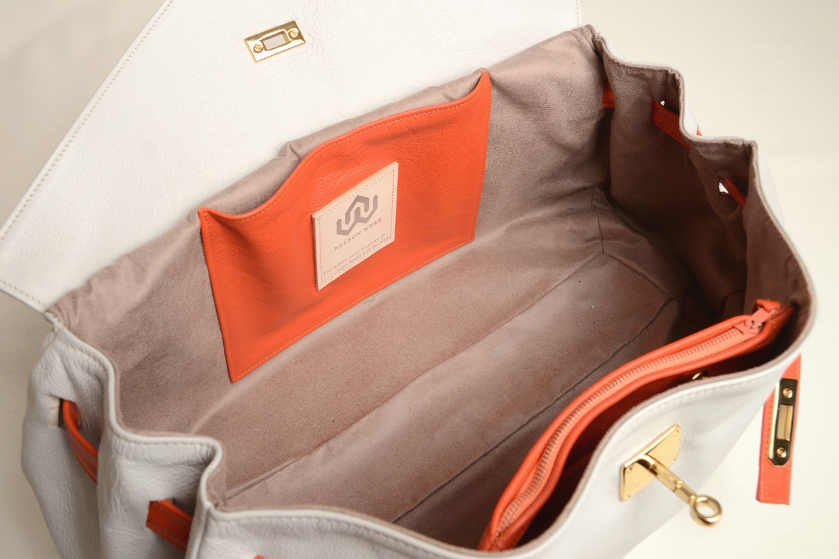 Leather Clutch & Shoulder Bag – Shadia Orange – Pattern