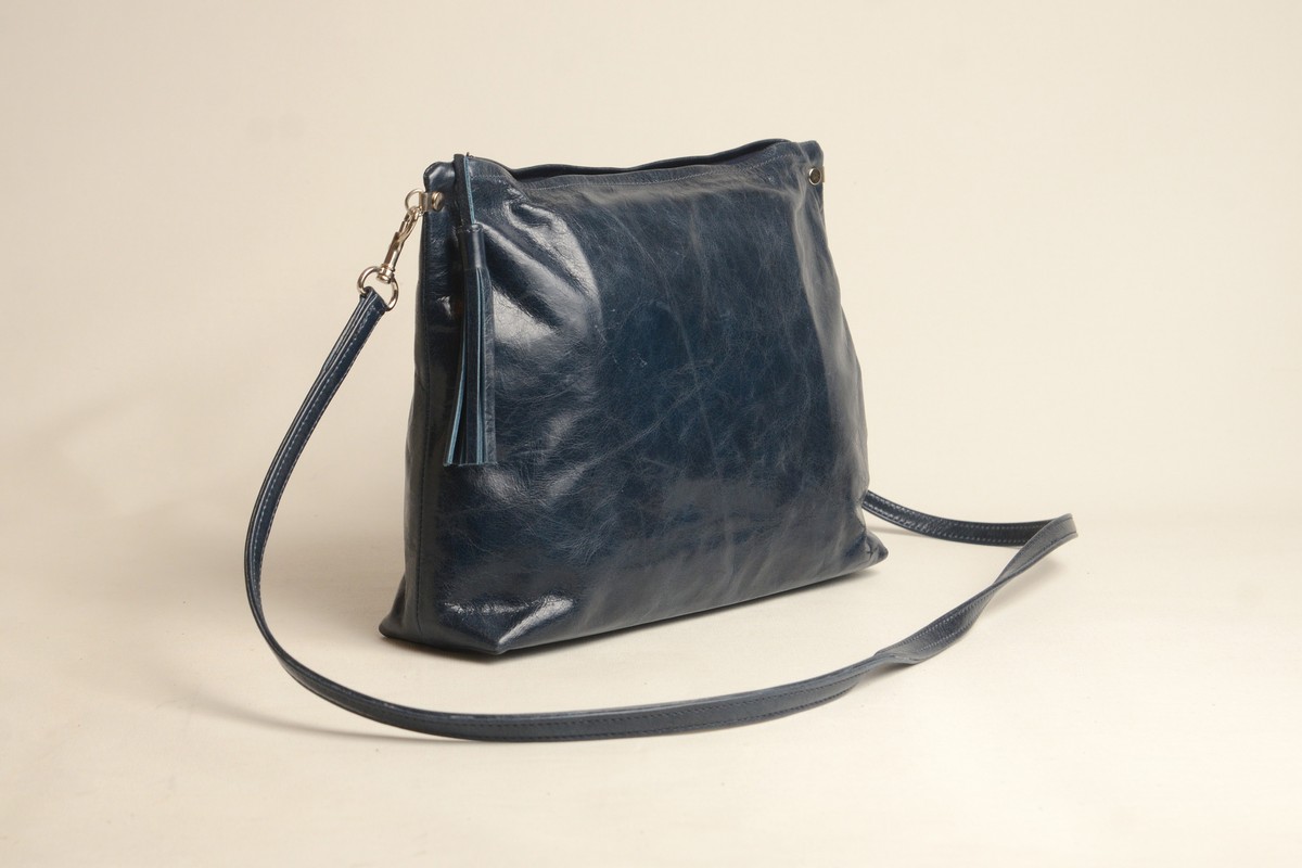 Leather Structured Top Handle Bag – Tiggy Blue – Antique Brass Lock